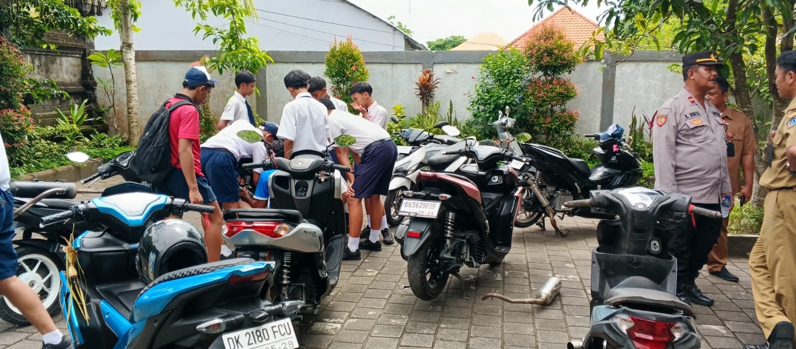 Kuta Selatan – Badung, Lensapolri.com – Selasa 25 februari 2025 , Kaposyan Kutuh, IPDA I Ketut Durya, bersama Babinsa dan pihak sekolah melaksanakan inspeksi mendadak (sidak) di SMPN 5 Kuta Selatan, Badung pada Senin 24/02 pagi Dalam sidak tersebut, ditemukan sejumlah siswa membawa sepeda motor dengan knalpot brong dan tanpa pelat nomor kendaraan (DK).