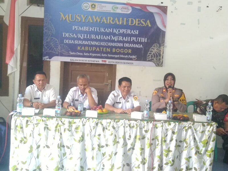 POLRES BOGOR – Kapolsek Dramaga Polres Bogor IPTU Desi Triana.,S.H.,M.H, menghadiri kegiatan Musyawarah pembentukan Koperasi Merah Putih di Aula Desa Sukawening, Kecamatan Dramaga, Kabupaten Bogor, Rabu (30/04/2025).