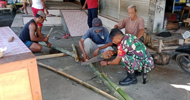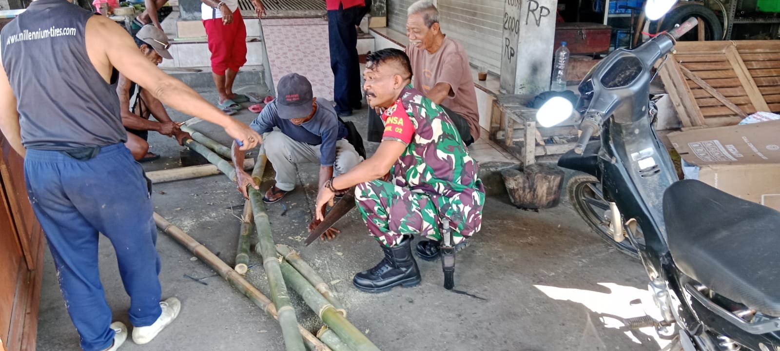 Babinsa Mendoyo Dampingi Warga dalam Persiapan Upacara Manusa Yadnya Sekaligus Sosialisasikan Rekrutmen TNI AD