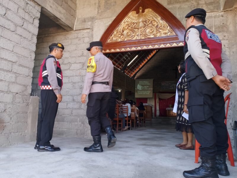 Demi menjaga situasi tetap kondusif, Personil Polsek dan Polres Bangli melaksanakan pengamanan kegiatan Ibadah Minggu, di Gereja Marga Rahayu Bangli, Minggu (4/5/2025) pagi.