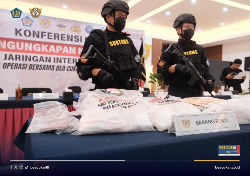 Tangerang, – Joint analysis dan joint operation Bea Cukai Soekarno-Hatta dengan Direktorat Interdiksi Narkotika Bea Cukai dan aparat penegak hukum lainnya gagalkan dua upaya penyelundupan narkotika, maisng-masing dalam satu barang kiriman dan satu barang bawaan penumpang. Dari keduanya, Bea Cukai Soekarno-Hatta mengamankan total barang bukti ±18.556 gram methampetamine/sabu dan ±4.030,46 gram ketamine, serta mengamankan 6 orang pelaku 21-08-2025.