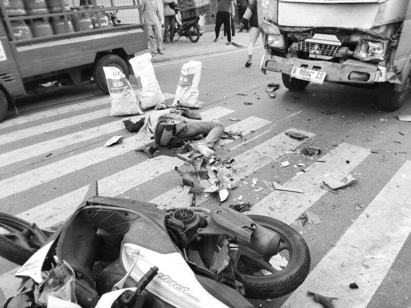 “Sesampainya di depan Masjid Jami Al-Marhumah, mobil boks tersebut menabrak sepeda motor Honda Beat B-4688-BER yang dikendarai Asep Sumardi. Benturan itu mendorong motor korban ke depan dan mengenai pengendara Honda Vario 125 B-6104-GMU yang dikendarai Andri,” kata Joko dalam keterangannya.