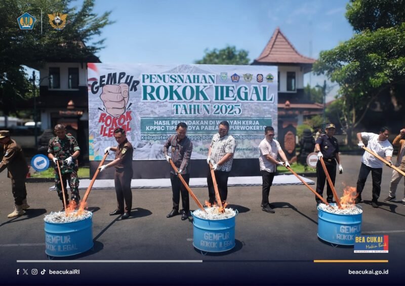 Purbalingga, Lensapolri.com – Bea Cukai Purwokerto bersama Pemkab Purbalingga menggelar pemusnahan barang kena cukai (BKC) ilegal hasil penindakan selama periode 2024 hingga Mei 2025. Pemusnahan dilakukan pada Selasa (23/09), di Pendopo Kabupaten Purbalingga,26/09/25.