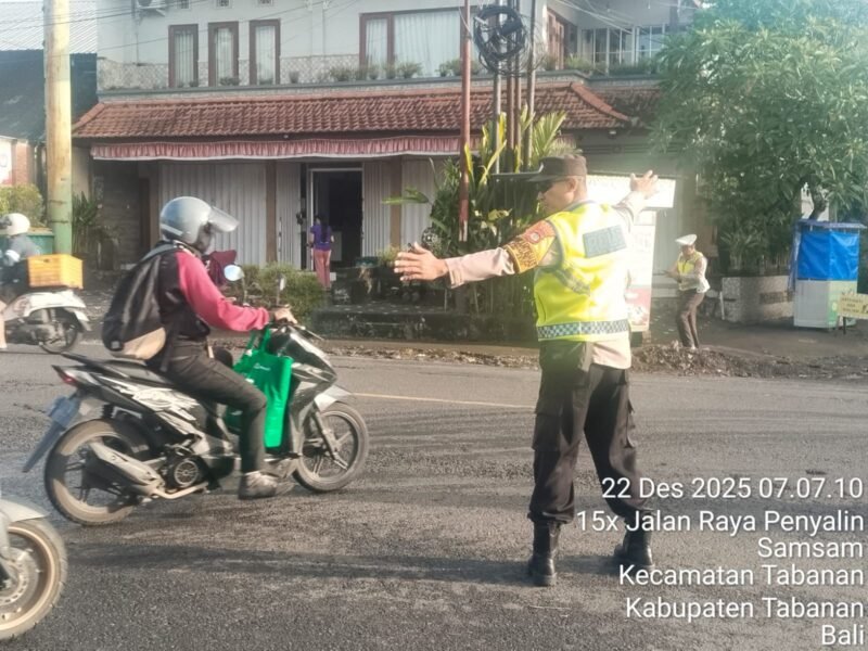 Lensapolri.com – Polres Tabanan-Polsek Kerambitan, Senin 22 Desember 2025; Anggota Polsek Kerambitan laksanakan tugas Pengaturan Lalu Lintas di Jalur Denpasar – Gilimanuk yang termasuk Daerah Hukum Polsek Kerambitan.