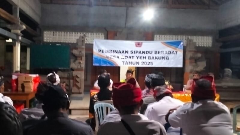 Suraberata – Sebagai wujud sinergi Polri dengan desa adat, Bhabinkamtibmas Desa Lalanglinggah Aiptu I Putu Sugiarta menghadiri kegiatan pembinaan Sipandu Beradat di Desa Adat Yeh Bakung pada Selasa (22/12/2025) malam, bertempat di Balai Banjar Dinas Yeh Bakung.