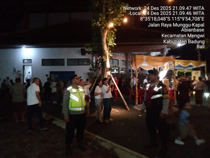 Lensapolri.com – MENGWI – Kapolsek Mengwi Kompol Anak Agung Gede Rai Darmayasa, S.H., M.H., melaksanakan pemantauan situasi kamtibmas sekaligus pengecekan personel pengamanan Ibadah Malam Natal di sejumlah gereja wilayah Kecamatan Mengwi, Rabu (24/12/2025).