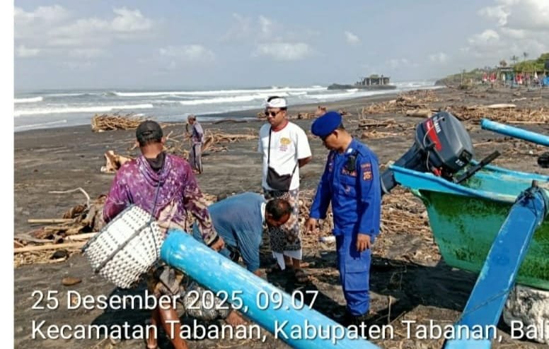 Lensapolri.com – Polda Bali – Polres Tabanan – Humas Tabanan. Personel Satuan Polairud Polres Tabanan melaksanakan patroli pesisir dan sambang pantai di kawasan Pantai Yeh Gangga, Kamis (25/12/2025) pagi. Kegiatan yang dimulai pukul 10.00 WITA ini dilakukan sebagai upaya menjaga situasi keamanan dan ketertiban masyarakat (kamtibmas), khususnya di kawasan wisata pesisir yang ramai dikunjungi masyarakat dan wisatawan pada momen Hari Raya Natal.