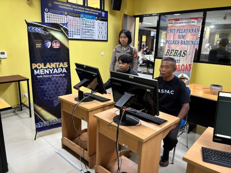 Lensapolri.com – Mangupura – Satuan Lalu Lintas Polres Badung terus meningkatkan kualitas pelayanan kepada masyarakat melalui program “Polantas Menyapa”, sebuah inovasi yang menekankan pelayanan ramah, cepat, dan bebas percaloan. Program ini terlihat diterapkan di Unit Pelayanan SIM Polres Badung, di mana masyarakat mendapat pendampingan langsung dari petugas saat mengikuti proses administrasi dan ujian berbasis komputer. Suasana pelayanan pun tampak tertib dan lebih nyaman bagi para pemohon.  Rabu (31/12/25)