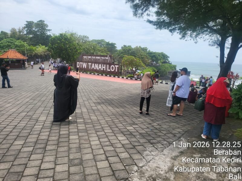 Hari Kamis, 1-1-2026 pukul 10.00 s/d 12.00 wita, personil Polsubsektor Tanah Lot Bripka I Made Subargayasa di backup personil opsnal Polsek Kediri bersinergi dengan satuan pengamanan kawasan DTW Tanah Lot dan pecalang melaksanakan patroli di kawasan baik lokasi parkir, Artshop dan pantai.