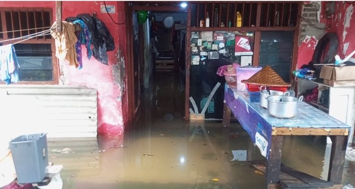 Tak hanya jalan, kawasan permukiman warga pun terdampak lebih serius. Di wilayah Warung Pojok dan Bakti Mulya, air masuk ke rumah-rumah warga. Di RT 15 RW 03, dan Di RT 02 RW 02 ketinggian banjir bahkan mencapai satu meter, memaksa sebagian warga mengungsi sementara dan menyelamatkan barang berharga ke tempat lebih tinggi.