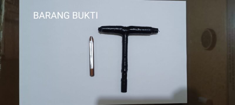 Dari hasil penggeledahan, ditemukan satu buah kunci letter T yang diselipkan di perut pelaku.