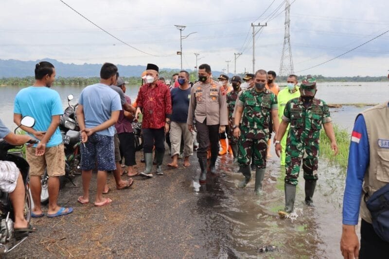 BANYUMAS – Kapolresta Banyumas Kombes Pol Edy Suranta Sitepu, bersama dengan Forkompinda Kabupaten Banyumas melaksanakan peninjauan bencana alam banjir yang melanda Kecamatan Sumpiuh dan Kecamatan Tambak. Selasa (15/03/2022).