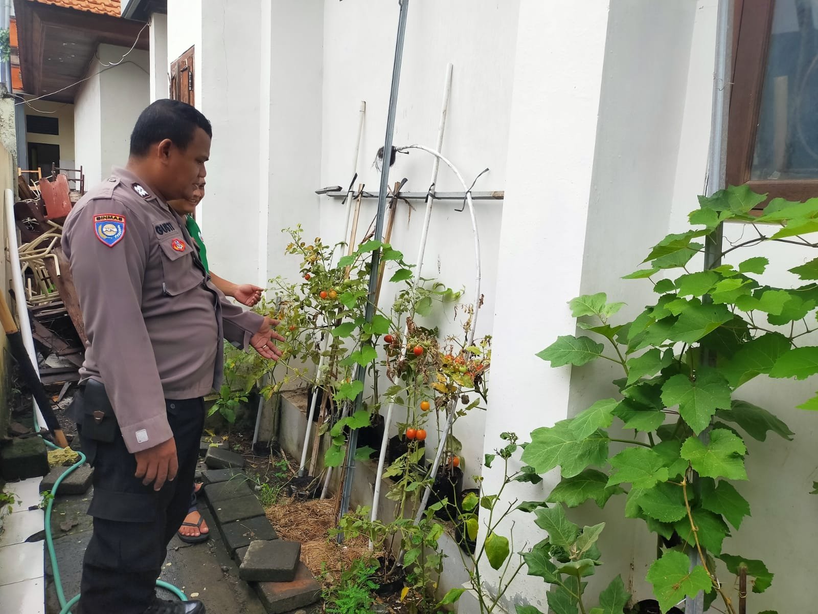 Mangupura – Dalam upaya menjaga ketahanan pangan di daerah hukum Polres Badung melalui Bhabinkamtibmas Kelurahan kerobokan Kelod Aiptu I Gusti Ngurah Darsana mengajak masyarakat yang berlokasi di Lingk. Umalas Kauh, Kel. Kerobokan Kelod, kecamatan Kuta Utara, Kabupaten Badung untuk terus melestarikan dan mengembangkan ketahanan pangan lokal dengan memanfaatkan pekarangan sekitar rumah. Upaya ini dilakukan sebagai upaya menjaga kemandirian masyarakat setempat dalam mencukupi kebutuhan pangan. Rabu ( 11/12/ 2024).