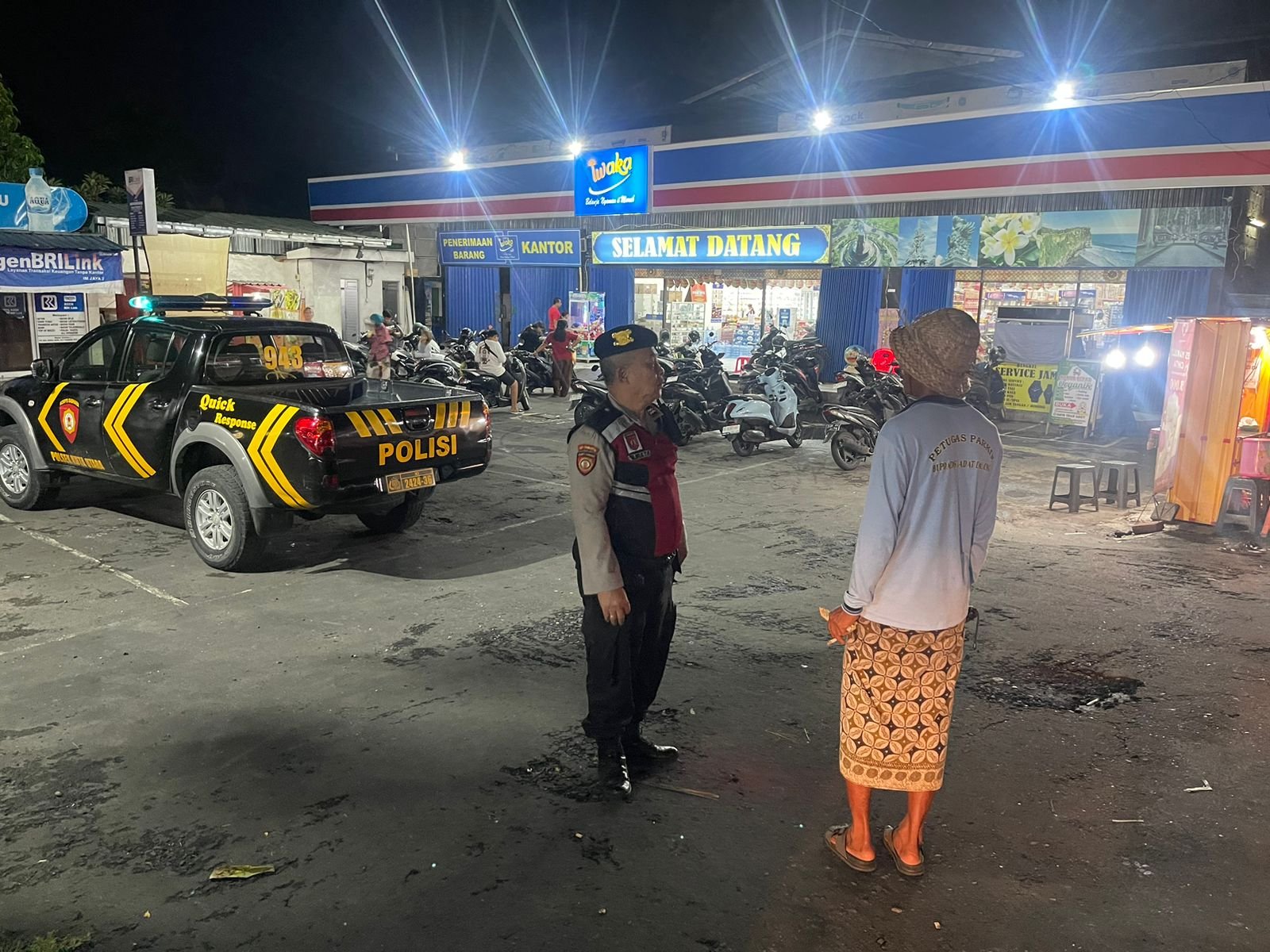 Kali ini kegiatan Blue Light Patrol menyasar lokasi pertokoan dan warung warung yang masih melayani pembeli di jalan Abianbase, Desa Dalung di pimpin Ps.Panit 2 Samapta Aiptu Nyoman Surata dengan anggota Samapta Bripda Putu Ega Arya Putra Pratama dengan menggunakan satu unit kendaraan dinas kijang 943 Kuta Utara. rabu (11/12/2024) pukul 22.00 wita.