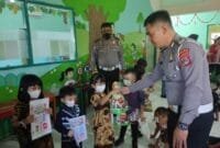 JAKARTA, Polisi Sahabat Anak ( Polsanak ), personel satuan lalu lintas Polres Metro Jakarta Barat memberikan edukasi kepada para anak-anak di TK Ra Aulia…