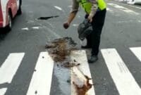 Jakarta Barat, Lensapolri.com – Personel Satlantas Jakarta Barat dengan sigap membersihkan tumpahan oli di jalan daan mogot raya TL Grogol Jakarta Barat, Selasa, 6/12/2022….