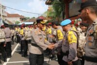 Mangupura – Kepala Kepolisian Resor Badung AKBP Teguh Priyo Wasono, S.I.K. pimpin langsung apel pengamanan pergeseran pasukan (Serpas) Tahap Pemungutan Suara Pilkada 2024 pada…