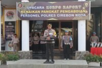 Cirebon Kota- Kepolisian Resor (Polres) Cirebon Kota menggelar Upacara Korps Raport Kenaikan Pangkat Pengabdian di Mapolres, Senin (6/11/23). Upacara tersebut dipimpin Kapolres Cirebon Kota…