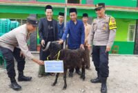 Majalengka- Kapolres Majalengka AKBP Indra Novianto yang diwakili Kapolsek Sukahaji Polres Majalengka AKP Rudy Djunardi menyerahkan hewan kurban secara simbolis kepada Yonif 321/Kostrad Galuh…