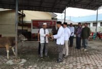 GAYO LUES Kapolres Gayo Lues AKBP Efrianza SIK didampingi para pejabat utama Polres Gayo Lues menyerahkan 2 ekor Sapi sebagai hewan Qurban untuk Hari…
