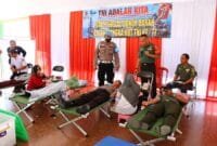Pringsewu Lensapolri.com Puluhan Personel Polres Pringsewu, Polda Lampung mengikuti Bakti Sosial donor darah dalam rangka menyambut Hari Ulang Tahun Tentara Nasional Indonesia (TNI) ke-77…
