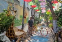 Jakarta- Guna mempercantik lingkungan, Gang H.Anan RT 004/09 Kel.Kamal Kec.Kalideres Jakarta Barat dilakukan Penataan kawasan Penataan kawasan dengan cara membuat Taman dan mural itu…