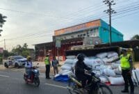 Pringsewu Lensapolri.com Kendaraan truk bernomor Polisi BE 8393 GT terguling di tapi ruas alan lintas Barat Sumatera Kelurahan Pajaresuk, Pringsewu, Lampung pada Selasa (27/9/22)…