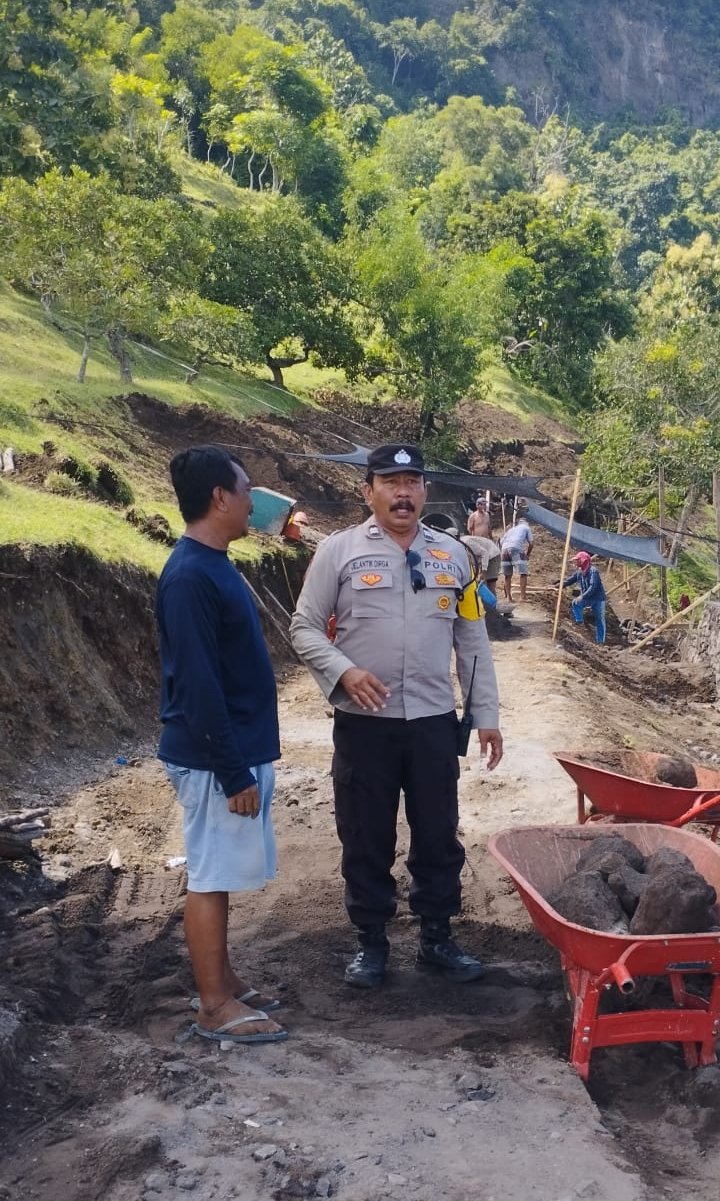Bhabinkamtibmas Desa Ngis Aiptu I wayan Jelantik Dirga,.pada hari Minggu tgl 4 Mei 2024 pukul 10, 05 wita, melaksankan sambang ke Banjar Pekarangan tepatnya ke proyek senderan yang rencananya akan dibikin villa oleh tamu dari Prancis yang sudah lama tinggal di Bali.