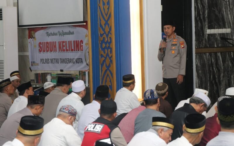 Tangerang – Kapolres Metro Tangerang Kota, Kombes Pol Zain Dwi Nugroho melaksanakan safari Ramadhan 1446 Hijriah/2025 Masehi melalui kegiatan Subuh Keliling (Suling) di Masjid Rahmatan Lil’Alamin di Perumahan Modern Land Jalan Taman Golf Boulevard Raya, Kelurahan Buaran Indah, Kecamatan Tangerang. Senin, 10-3-2025.