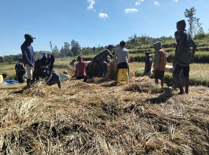 Sementara itu Fabianus Mauk, pemilik lahan dengan penuh syukur mengungkapkan rasa terima kasihnya kepada anggota Pos Lookeu karena telah membantu panen padi di sawah miliknya sehingga dapat berjalan lancar sesuai target.