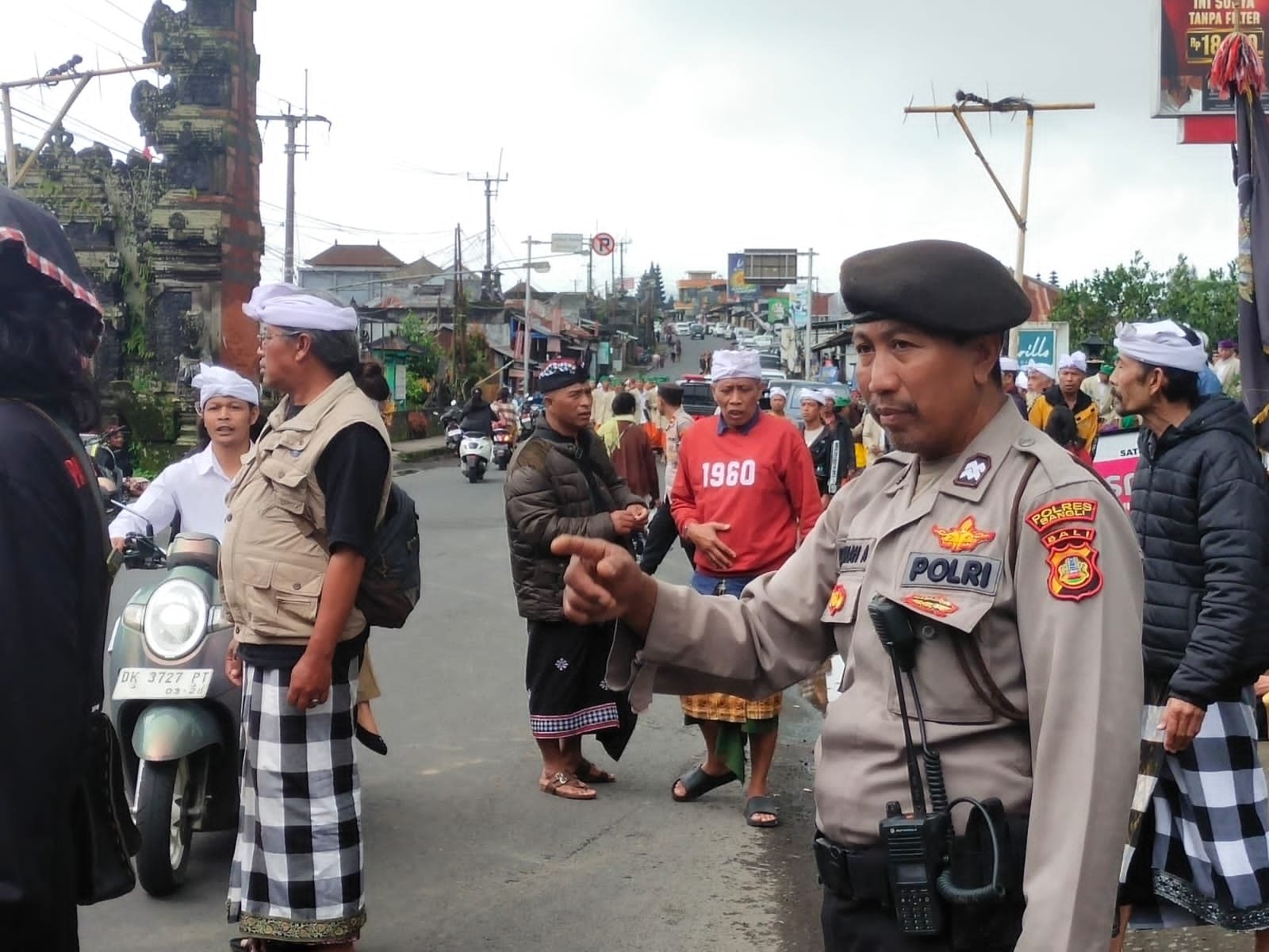 Kapolsek Kintamani Bersama anggota melakukan pengamanan dan pengaturan arus lalulintas untuk mencegah terjadinya kemacetan dan gangguan keamanan selama proses penjeputan jenasah datang dari Denpasar di jemput oleh warga di Parkiran Tunon Pura Batur Kintamani menuju Kediaman Jro Gede Batur Alitan di Sebelah Utara Pura Batur Kintamani. Ia bersama beberapa warga berjaga di sepanjang jalan yang dilalui jenazah menuju Kediaman Jro gede Batur Alitan untuk di semayankan sentara menunggu proses lebih lanjut untuk upacara pelebon.