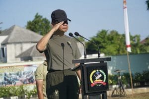 Bertindak selaku Inspektur Upacara pada kegiatan tersebut, Komandan Korem 162/WB, Brigjen TNI Sudarwo Aris Nurcahyo, S.Sos., M.M, sedangkan Komandan Upacara ditunjuk Wadanden Zibang Mataram Mayor Czi Kadek Swastika.