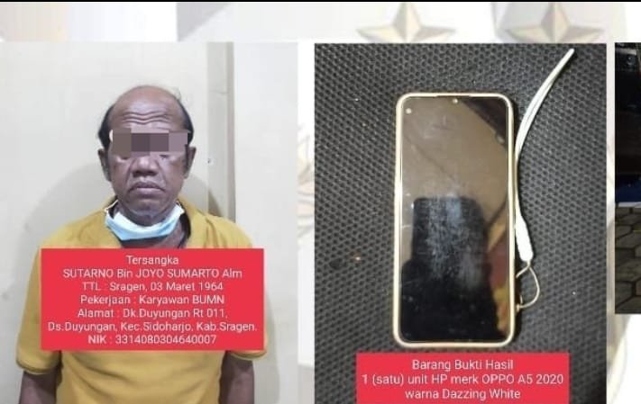 Pelaku bernama Sutarno warga Duyungan Kecamatan Sidoharjo Sragen, datang ke Mall Pelayanan Publik untuk mengurus KTP yang hilang, namun saat mengantri, pelaku mengambil HP milik salah satu warga lainnya yang sama-sama mengantri, bernama Christin Mayangsari warga Kalijambe Sragen.