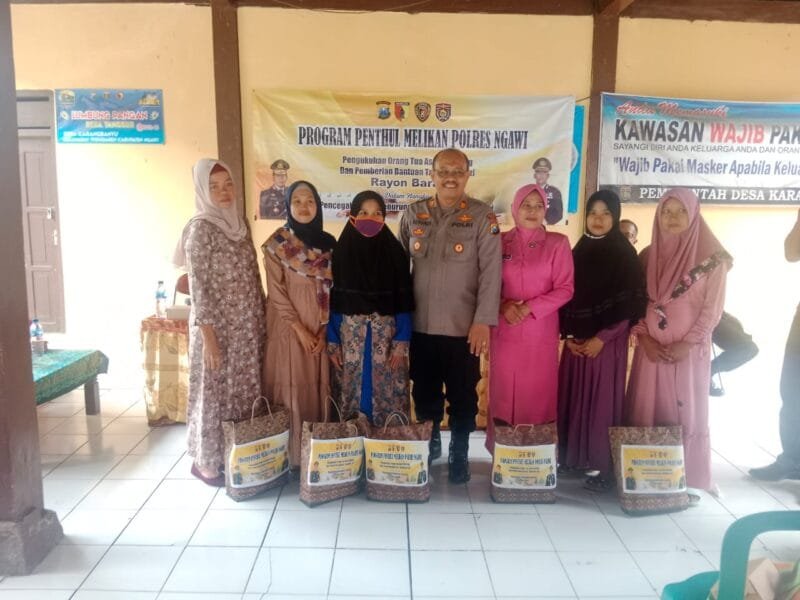 Ngawi, Lensapolri.com – Melalui Program Penitipan Anak Asuh Stunting Melalui Anggota Polisi turunkan Prevalensi di Ngawi (Penthul Melikan), Polsek Rayon Barat (Kedunggalar, Widodaren, Karanganyar dan Mantingan) Polres Ngawi menyalurkan Pemberian Makanan Tambahan (PMT) kepada anak asuh yang mengalami Stunting dan Ibu hamil di Wilayah Polsek Rayon Barat yang dipusatkan di Pendopo Kantor Desa Karangbanyu Kecamatan Widodaren Kabupaten Ngawi.