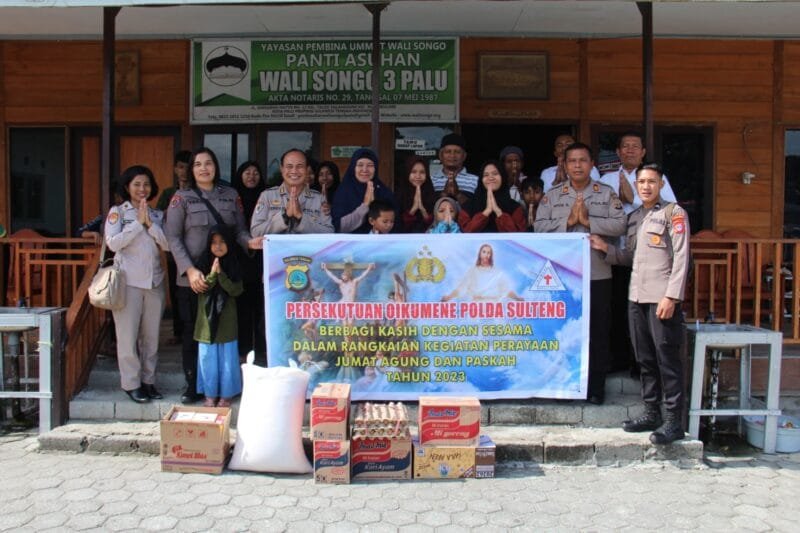 PALU, Peringatan wafatnya Isa Almasih yang biasa dikenal dengan hari Paskah, diperingati Polda Sulawesi Tengah melalui jemaat gereja Oikumene Rapuji tupu dengan menggelar Bakti sosial (Baksos) di Kota Palu.