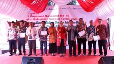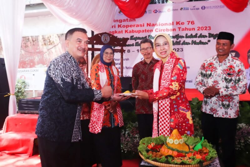 Kabupaten Cirebon- Pemerintah Kabupaten Cirebon memperingati Hari Koperasi Nasional ke-76 tingkat Kabupaten Cirebon tahun 2023 dengan mengusung tema “Membangun Koperasi Berbasis Kearifan Lokal dan Digital Menuju Ekonomi Kerakyatan yang Adil dan Modern” bertempat di halaman Dinas Koperasi dan UKM Kabupaten Cirebon, Selasa (8/8/2023).