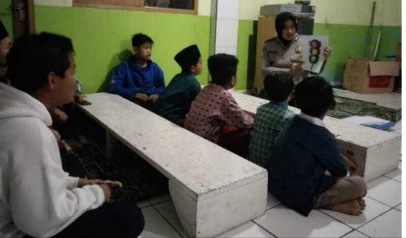 LENSAPOLRI. .COM. BANDUNG— , Serdik Yulies Andri Pratiwi, Sik Pokjar XVIII melaksanakan edukasi kepada para santri di desa gudang Kahuripan lembang Bandung barat, Rabu, 31/8/2022