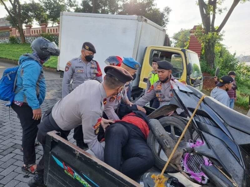 SEMARANG – Kecelakaan lalu lintas terjadi di depan Mako Dit Samapta Polda Jawa Tengan, Jumat (17/12/2021) pukul 06.52 WIB. Sebuah truk bernopol H 8265 QH menabrak sepeda motor yang dikemudikan seorang wanita paru baya hingga tak sadarkan diri.