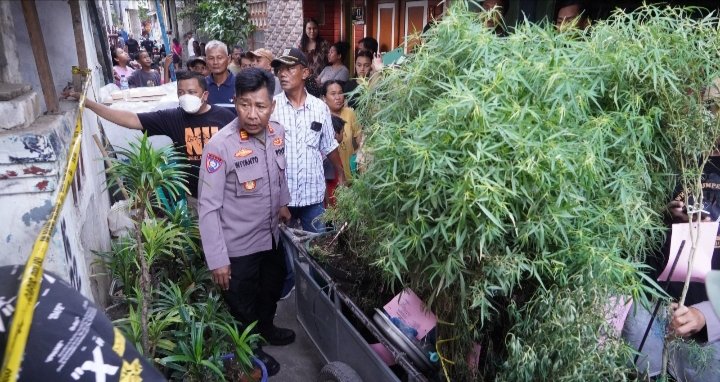 Saat memeriksa area sekitar, polisi juga menemukan 16 pot berisi 40 pohon ganja yang ditanam di atas genteng rumah.
