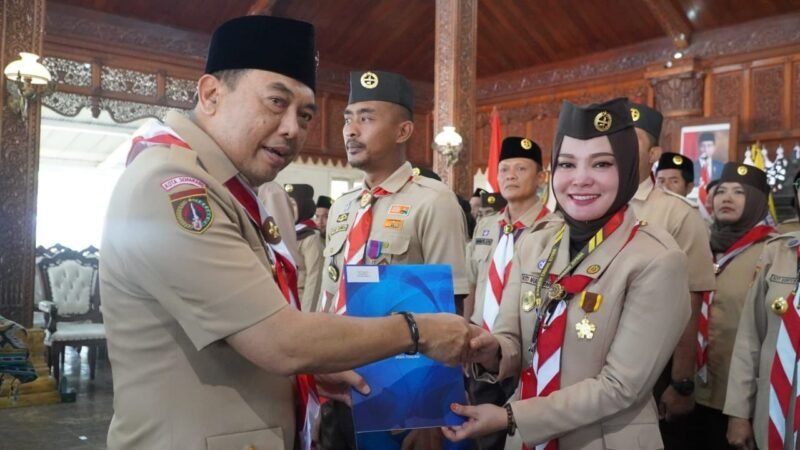 Jepara- Ketua Kwartir Cabang Pramuka Kabupaten Jepara Hesti Nugroho menerima penghargaan Lencana Darma bakti dari Kwartir Nasional (Kwarnas) Pramuka, penyematan lencana dilakukan Penjabat Bupati Jepara Edy Supriyanta di Pendopo Kartini Jepara. Jumat, (8/9/ 2023).